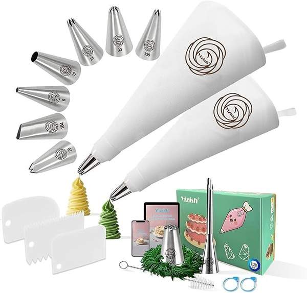 [b]Titel: Spritzbeutel mit Tüllen Set Das ultimative Backzubehör für kreative Kuchenliebhaber![/b] Verleihen Sie Ihren Torten den letzten Schliff mit unserem hochwertigen Spritzbeutel-Set! Dieses 18-teilige Set enthält alles, was Sie für beeindruckende Backkreationen benötigen: 2 wiederverwendbare Spritzbeutel aus strapazierfähiger Baumwolle, 3 Edelstahl-Spritztüllen in verschiedenen Formen und 3 praktische Tortenschaber. Ob für Sahne, Buttercreme oder Fondant mit […]