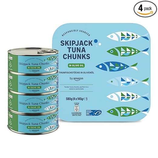 [b]by Amazon Thunfischstücke in Olivenöl, 145g (4er-Pack)[/b] Genießen Sie den exquisiten Geschmack von by Amazon Thunfischstücken in hochwertigem Olivenöl die perfekte Ergänzung für Ihre nächsten Gerichte! Diese zarten Thunfischstücke sind nicht nur schmackhaft, sondern auch eine hervorragende Proteinquelle. Ob im Salat, auf Pizza oder einfach pur auf einem Cracker lassen Sie Ihrer Kreativität freien Lauf. […]