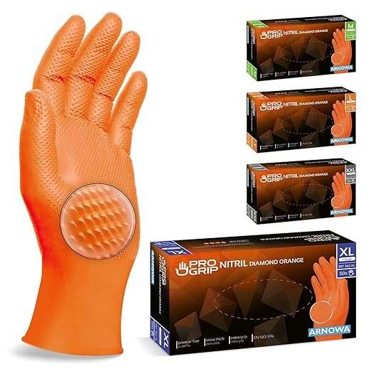 ### PROGRIP Einweghandschuhe Diamant Grip, Orange Entdecken Sie die perfekte Kombination aus Sicherheit und Komfort mit unseren PROGRIP Einweghandschuhen! Die extra starken Nitrilhandschuhe mit Diamant Grip-Technologie bieten optimalen Halt und schützen Ihre Hände vor Schmutz und Chemikalien. Jedes Paar ist 2x dicker als herkömmliche Einmalhandschuhe, wodurch sie besonders widerstandsfähig und langlebig sind. [b]Vorteile auf einen […]